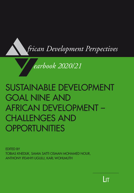 The book is described by the volume editors as follows: “Volume 22 (2020/2021) of the African Development Perspectives Yearbook with the title “Sustainable Development Goal Nine and African Development – Challenges and Opportunities” focusses on the relevance of Sustainable Development Goal (SDG) 9 (“Build resilient infrastructure, promote inclusive and sustainable industrialization, and foster innovation") for Africa’s development. In three Units key issues in the context of SDG 9 are analysed at the continental level and in country case studies.